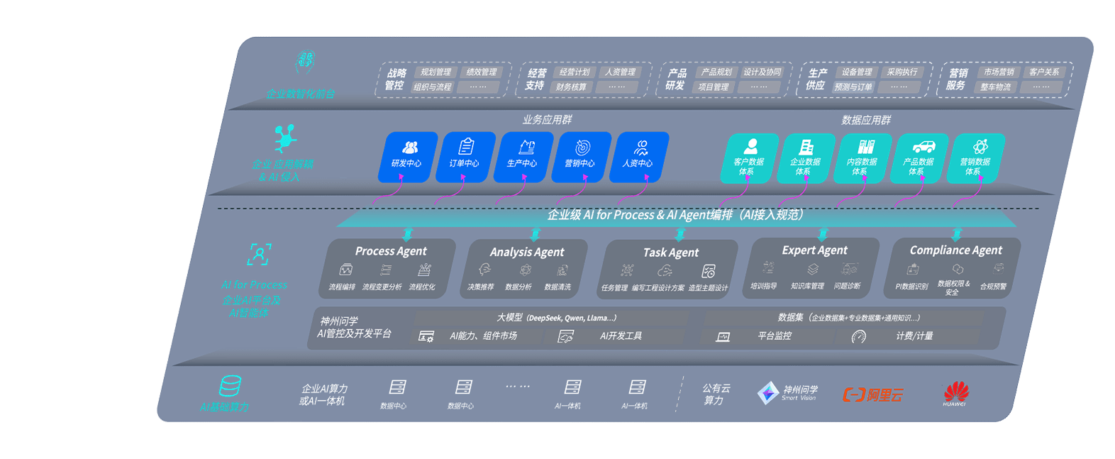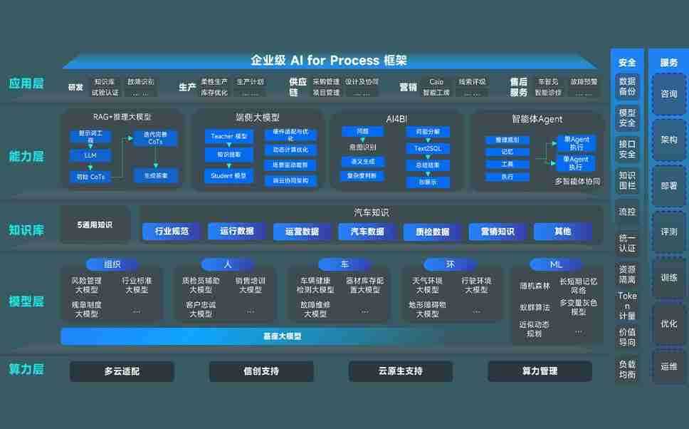 端到端的一站式AI工作空间深度融合了从企业战略规划到日常经营的全流程业务板块,,,,定向解决车企内部领域多、、、部门多、、、链条长、、、、场景碎片化等难题,,,支持车企快速构建以AI为核心的生产力写作体系,,,实现任务执行与AI能力的无缝集成与交互